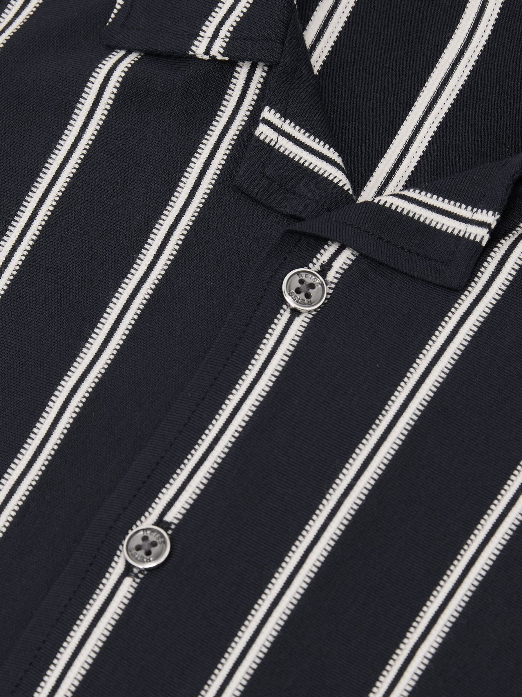 13-14 yrs Stripe Knitted Cuban-Collar Shirt in Navy/White