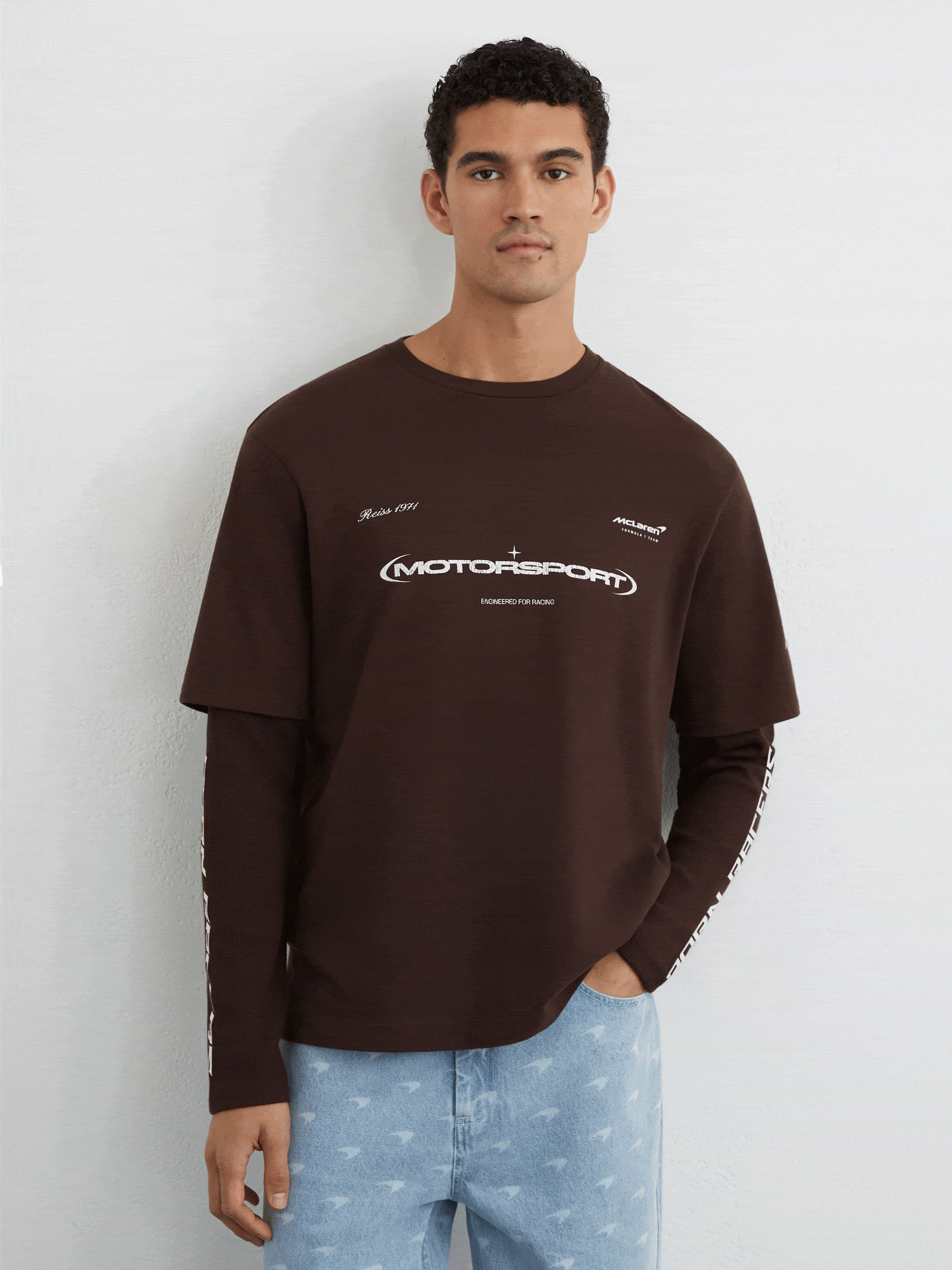 (53)The Reiss | McLaren Racing Season 03 menswear collection blends motorsport heritage with elevated, everyday style. This latest selection features casual staples, including T-shirts, hoodies, sweatshirts and joggers, alongside elevated knitwear and updated editions of Season 01 and 02’s best-selling fleeces. Statement outerwear, from suede and shearling jackets to denim pieces, completes the collection with a contemporary edge. McLaren Racing logos and motorsport-inspired graphics deliver a signature touch, while relaxed silhouettes and unisex styles make pieces easy to wear – and share.